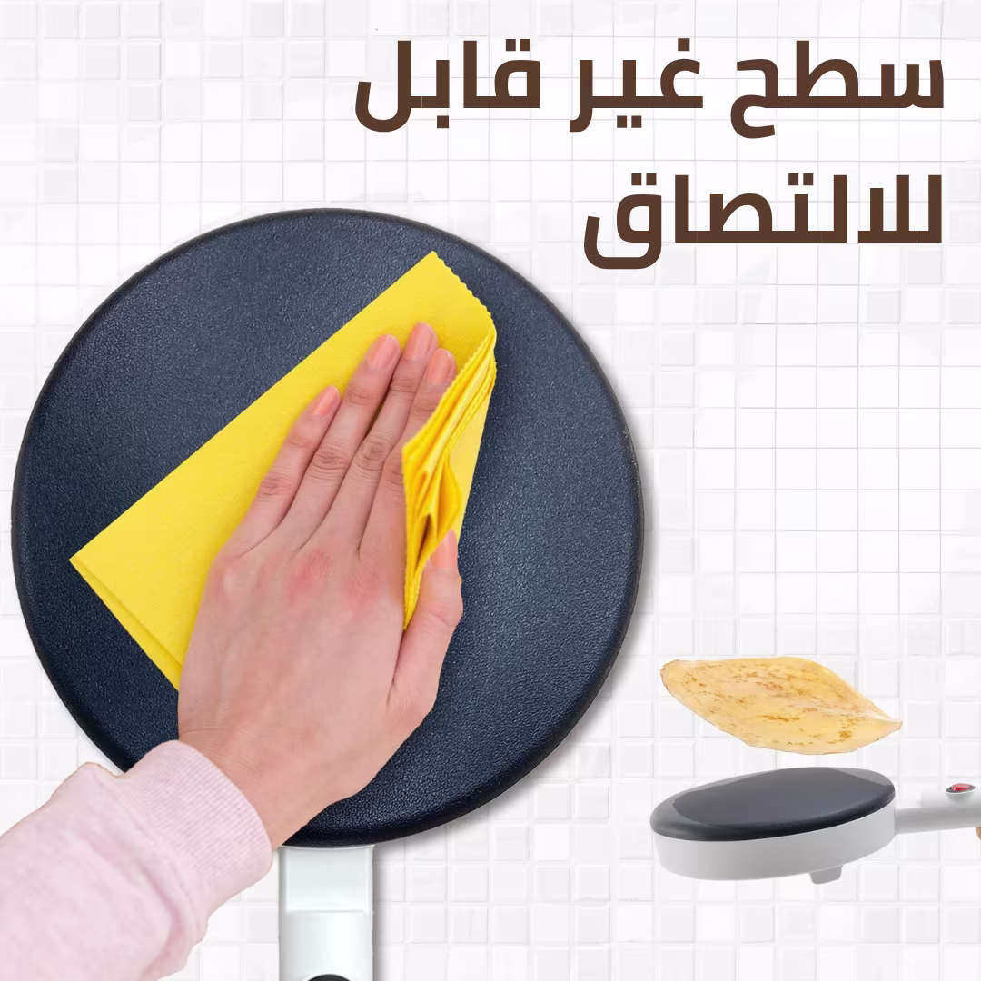 سطح غير قابل للالتصاق: الكريب ينسحب بسهولة بدون ما يلزگ بالطاوة – حتى بدون زيت.