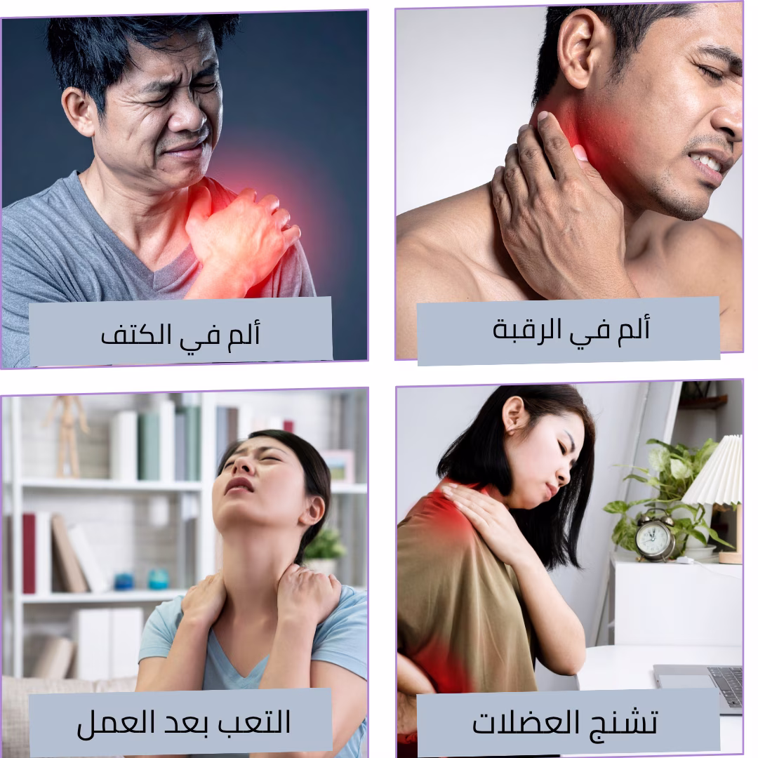 يمكن استخدامه للكتف، الرقبة، الظهر، اليدين، الأرجل والخصر بسهولة